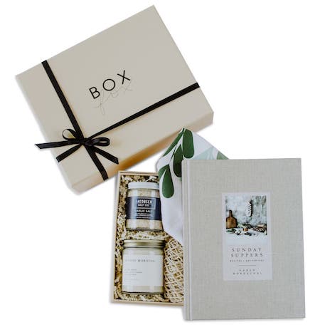 This luxe gift box comes with a recipe book (for practice), garlic salt (for seasoning any grub gone wrong) and a candle (for masking any kitchen mishaps)!